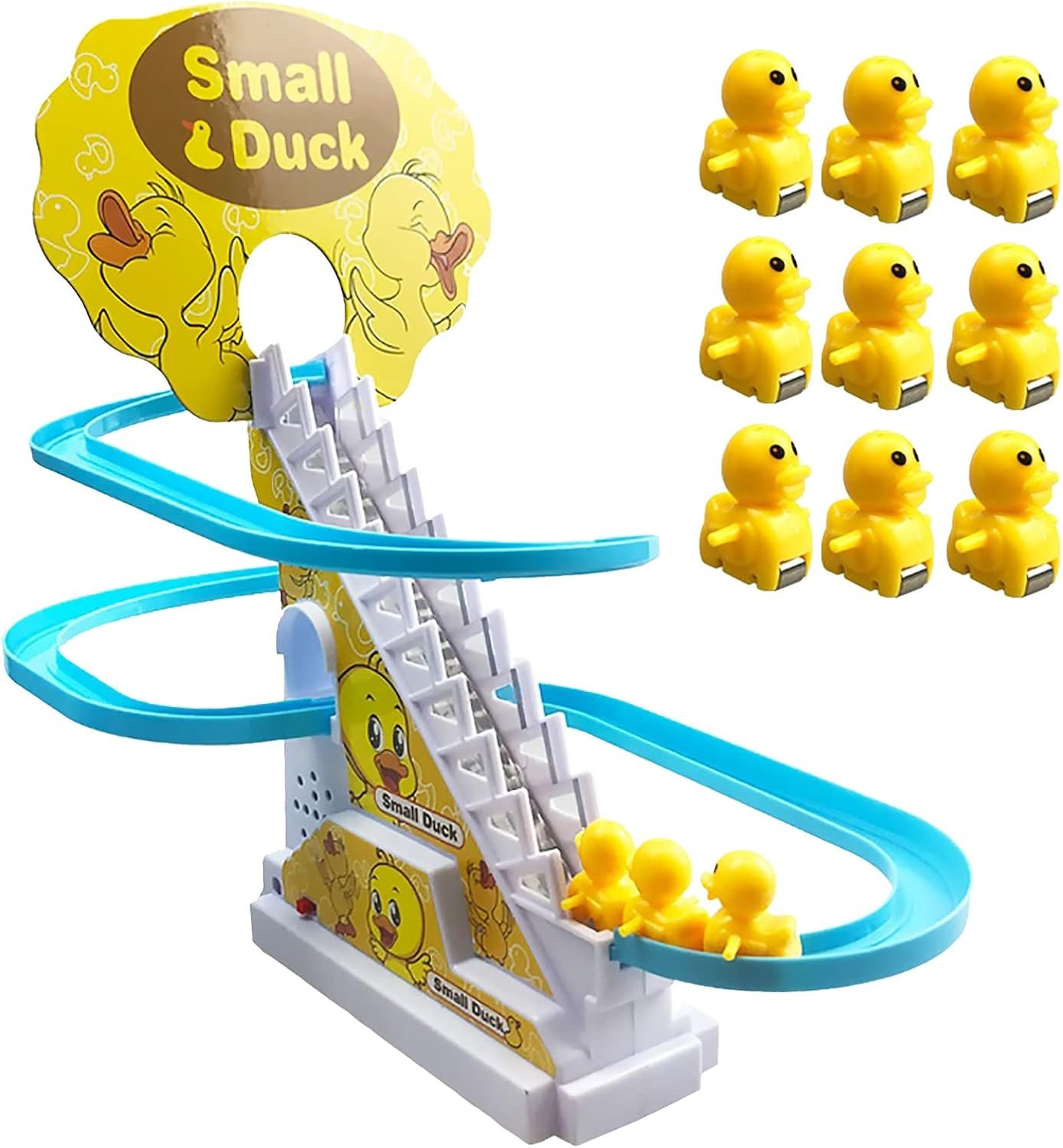 Duck Track Set – 3 Ducks Included is an entertaining and interactive toy designed to keep kids engaged for hours. The set features a colorful track where the cute ducks climb the stairs and slide down the track repeatedly, creating a fun and continuous movement. With bright lights and cheerful music, it attracts children’s attention and makes playtime more exciting.